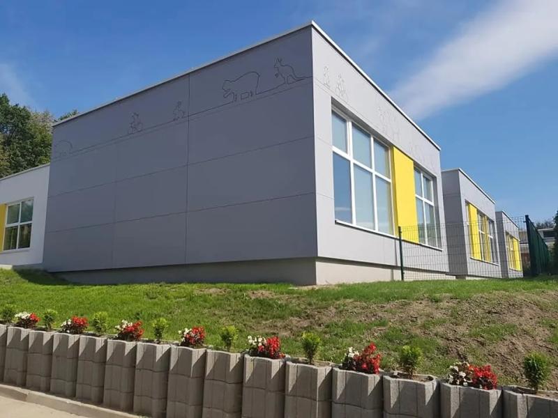Przedszkole modułowe w gminie Mielnik, wykonane w technologii modułowej. Obiekt zapewnia 100 miejsc dla najmłodszych.